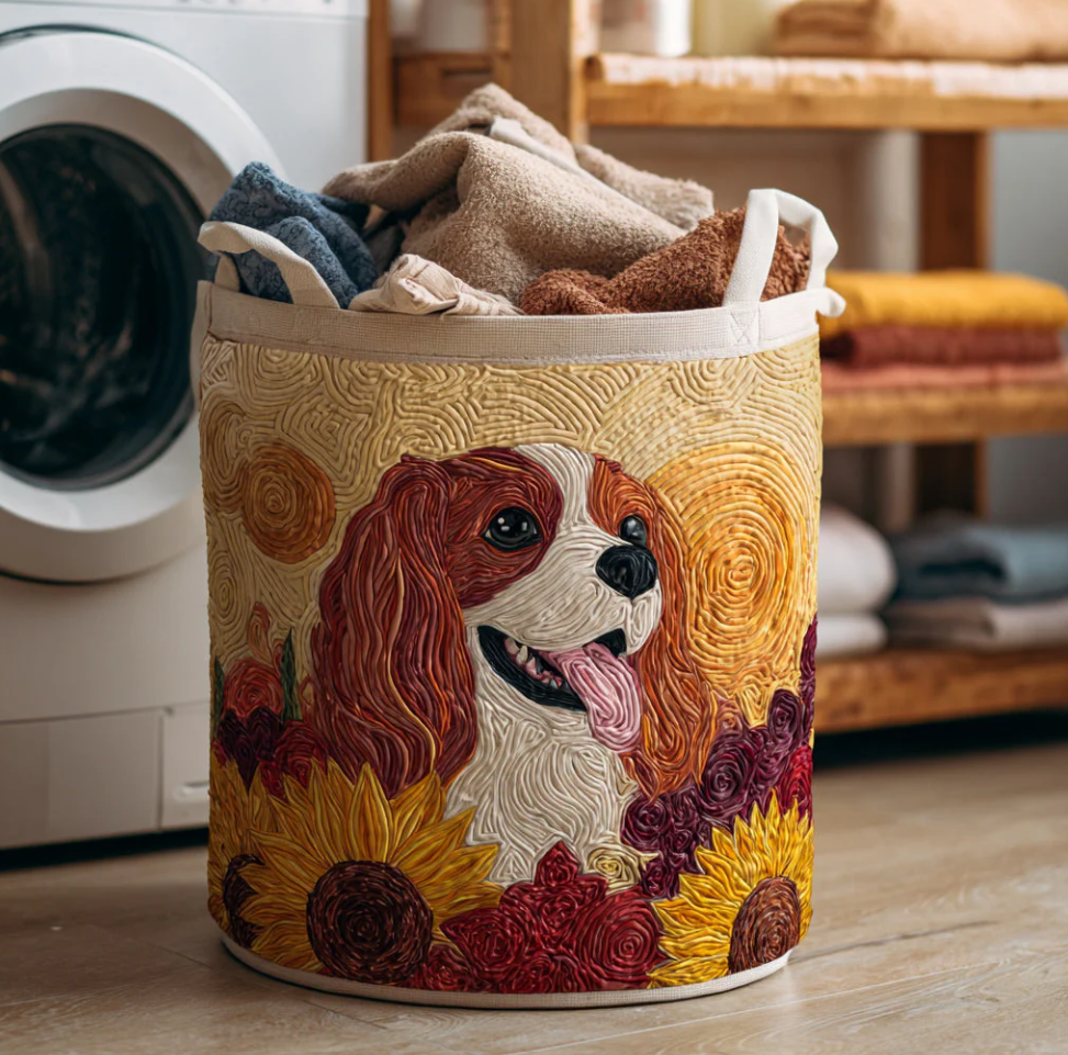 Vivid Cavalier King Charles Spaniel Pattern Quilted Laundry Basket Eco-Friendly Machine Washable Storage Organizer for Home Bathroom Bedroom | Dog