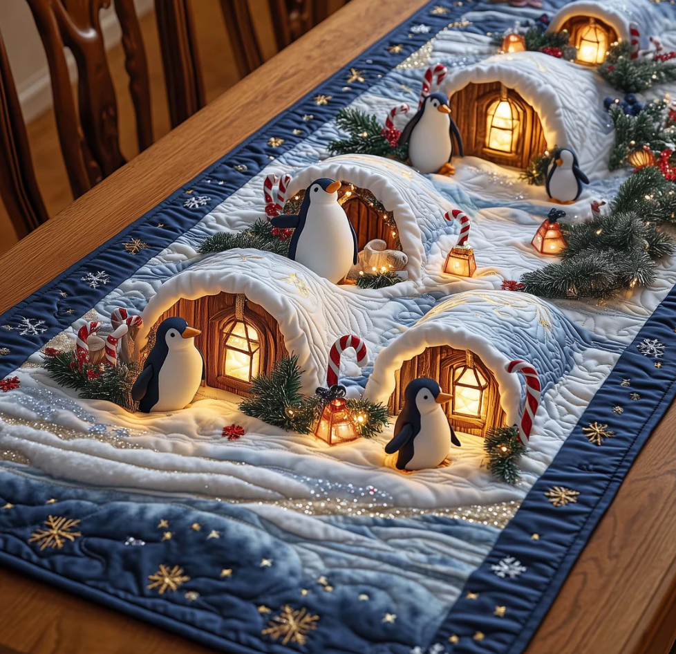 Cute Penguin & Igloo Quilted Table Runner for Home Dining Decor - Multiple Sizes | Penguin