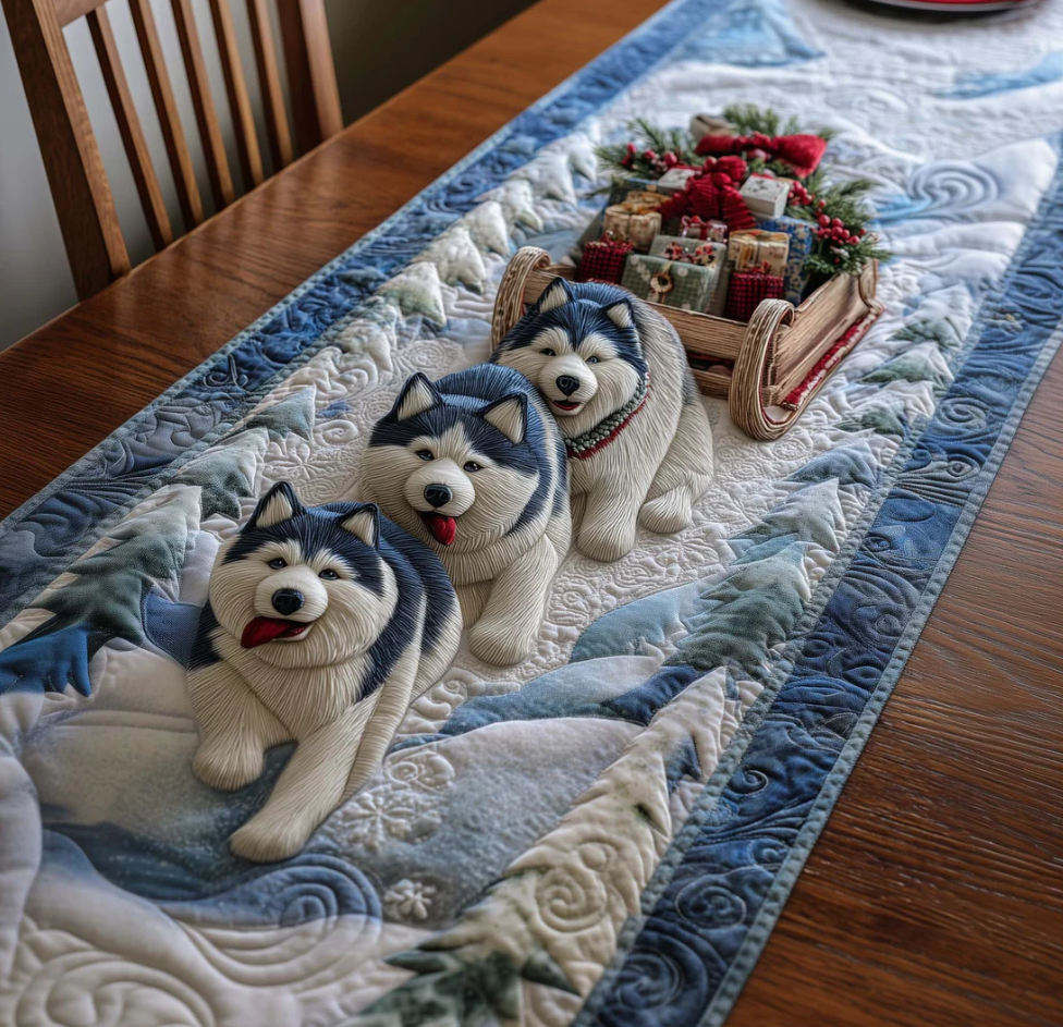 Winter Husky Pattern Quilted Table Runner - Eco-Friendly & Machine Washable | Dog