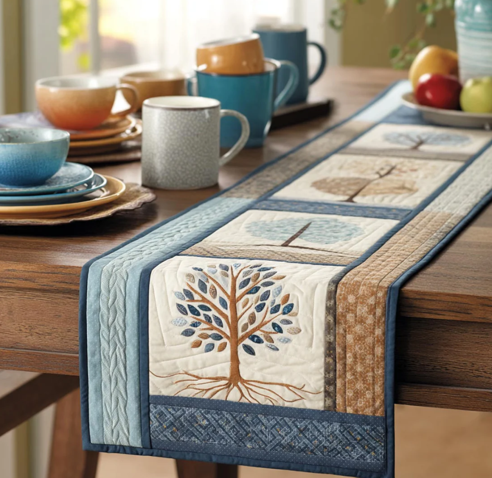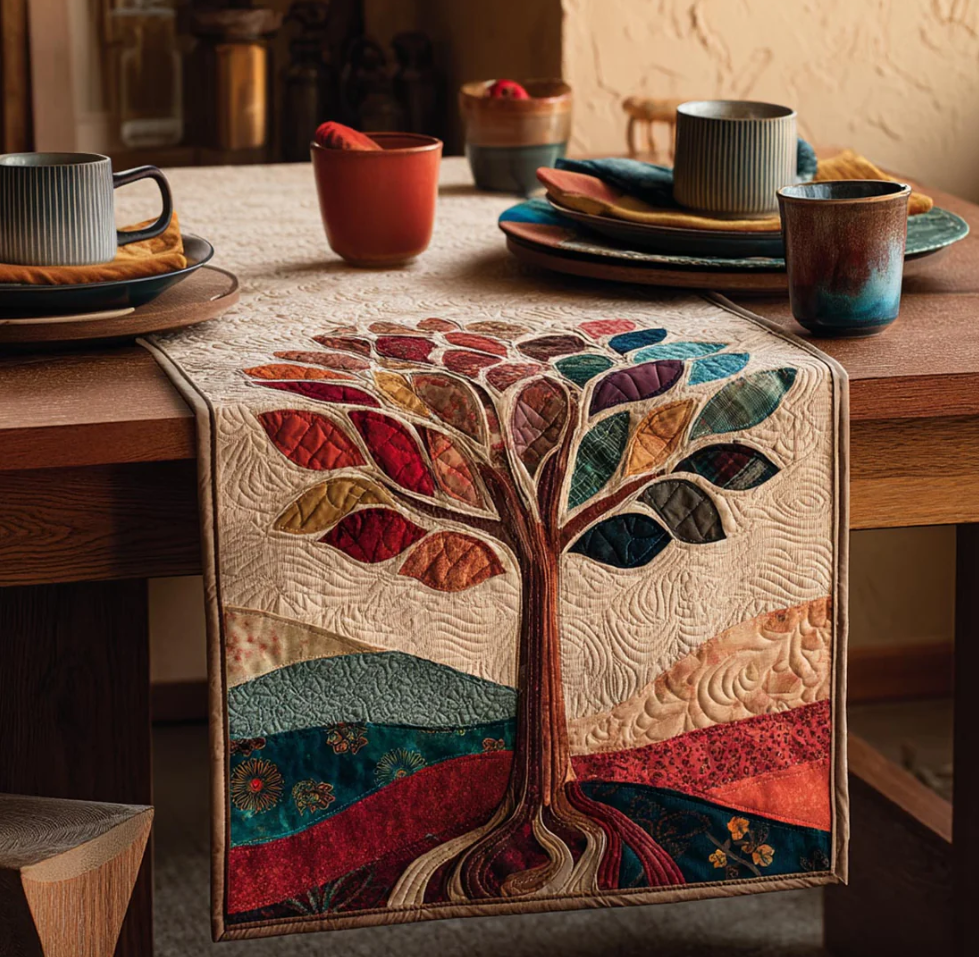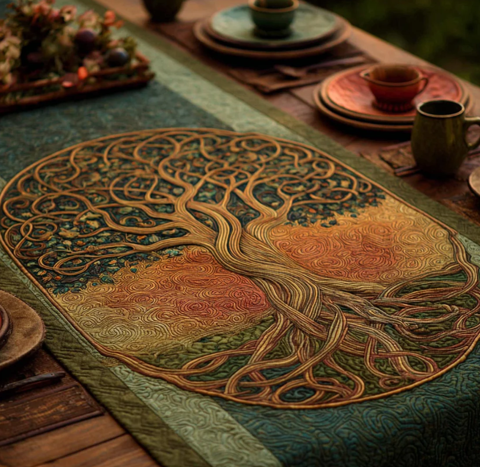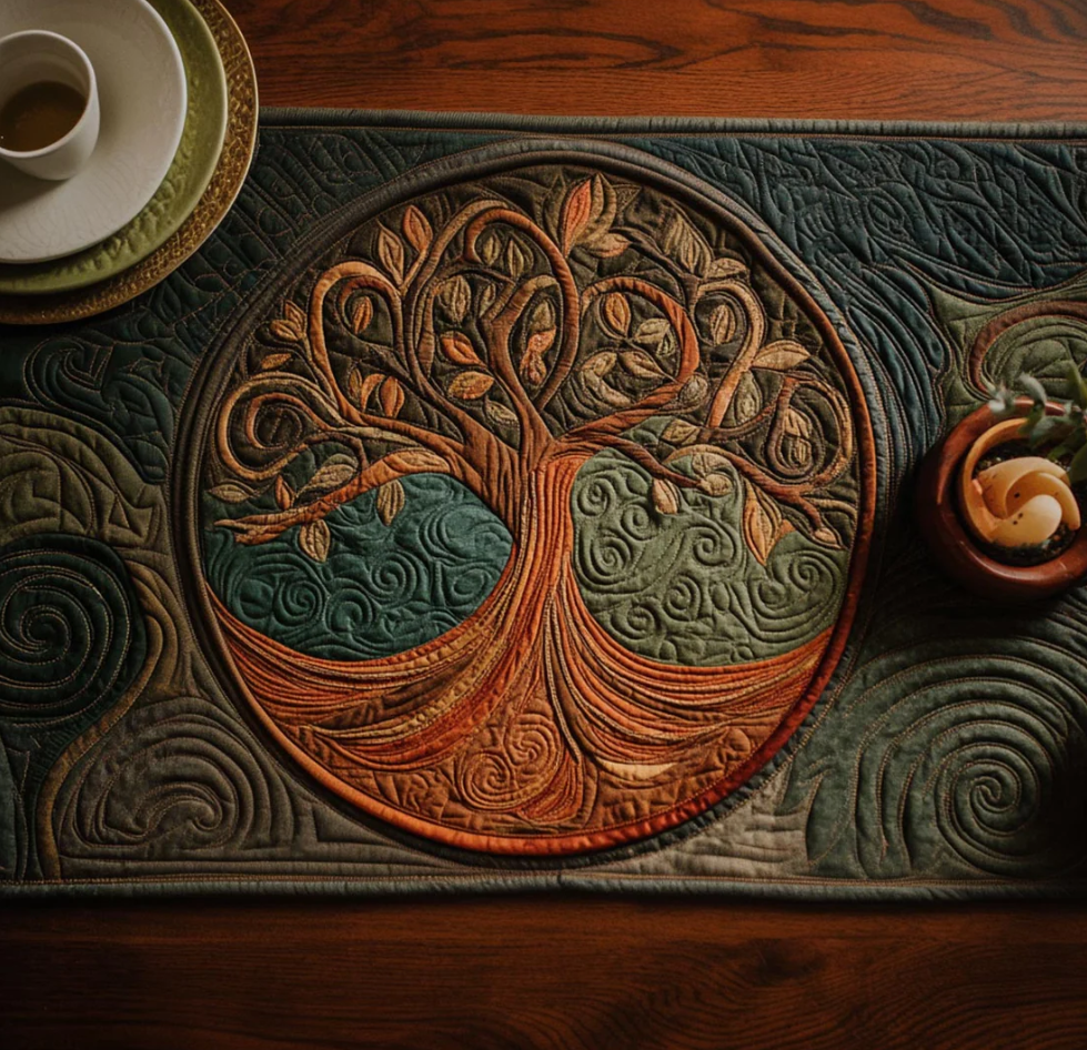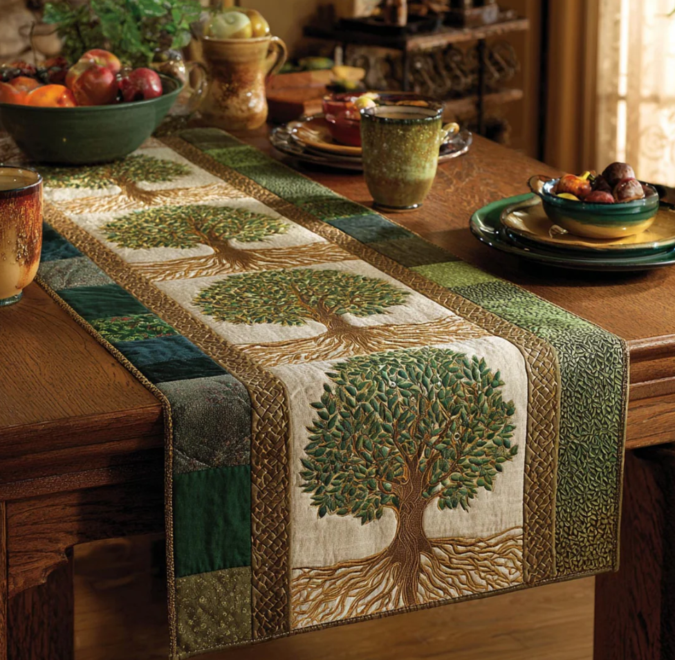 Vintage Tree of Life Series Handcrafted Eco-Friendly Quilted Table Runner | Tree
