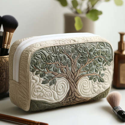 Eternal Roots Quilted Makeup Bag Tree of Life Pattern