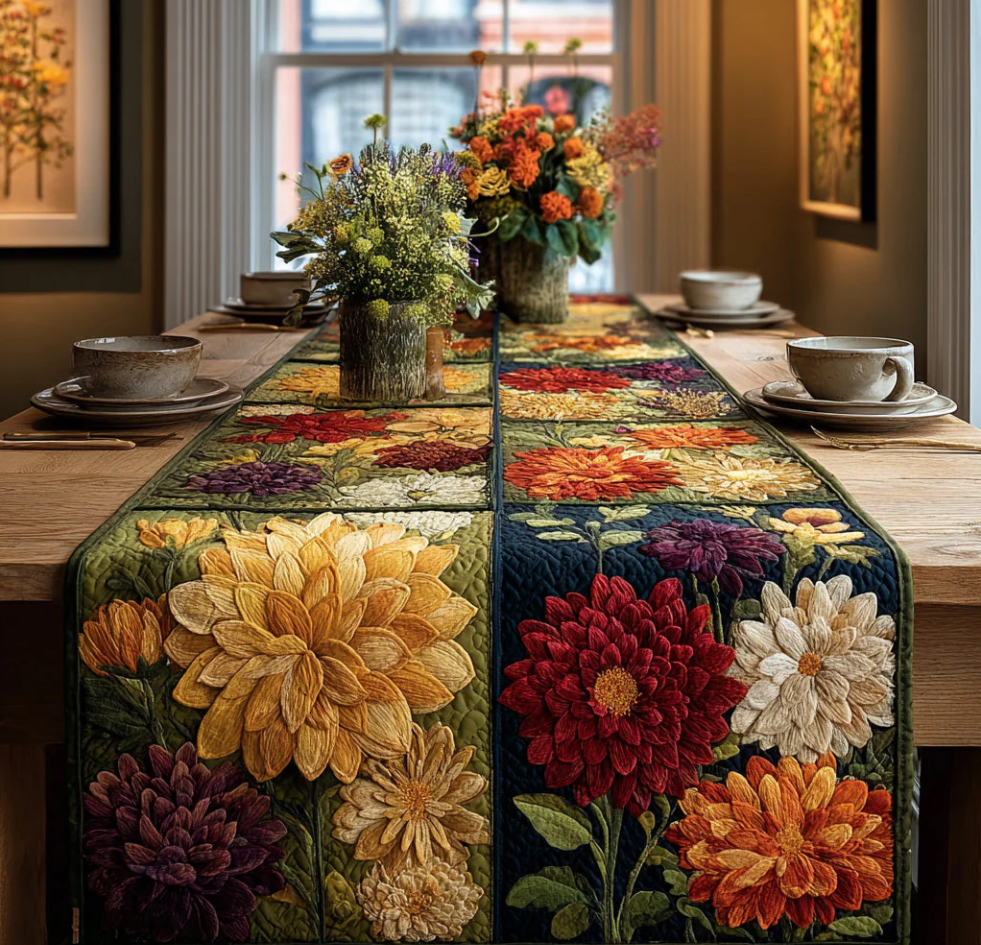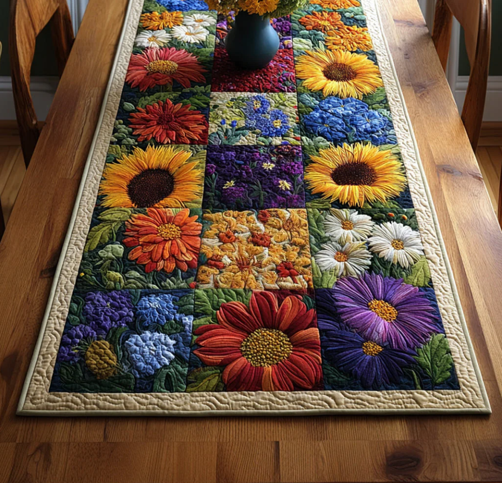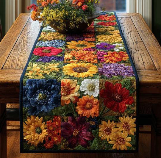 Vivid Floral Patchwork Pattern Handcrafted Eco-Friendly Quilted Table Runner | Flower